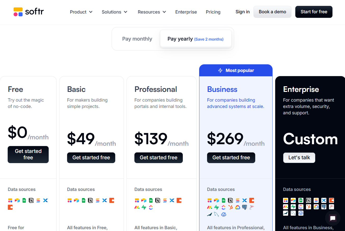 As you grow, you'll likely look at their paid plans. The Basic plan kicks off around $49 per month, which is where you can start removing Softr branding and using your own domain. Then there's the Professional plan, usually around $139 monthly, offering more power for growing apps and better user management. For teams needing more robust features and priority support, the Business plan sits around $269 per month. They also have custom Enterprise options for those with really specific, large-scale requirements.