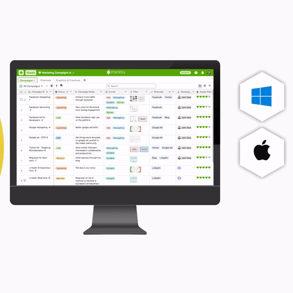 Stackby is easy as a spreadsheet, but you can mould it into a powerful database app builder that your teams will love to use. Design from scratch, import excel or google sheet or create your own template, in a few minutes. And it's mobile friendly.