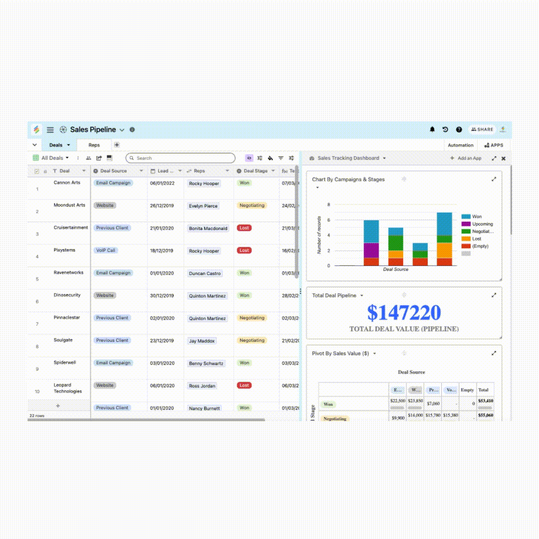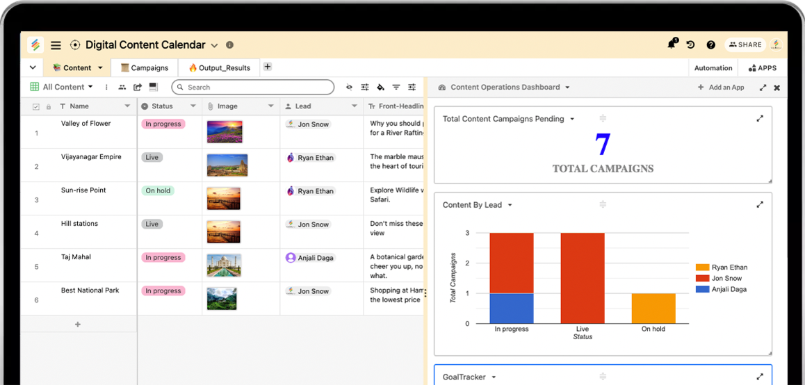 With over 25+ unique column data types, 6 data views, powerups, reporting dashboards & ever increasing capabilities in Stackby, you can easily create a powerful database app built for your team's workflow.