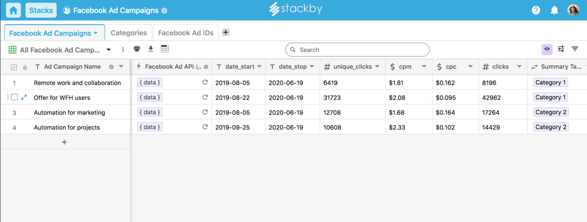 Do more with Facebook Ads and Stackby.