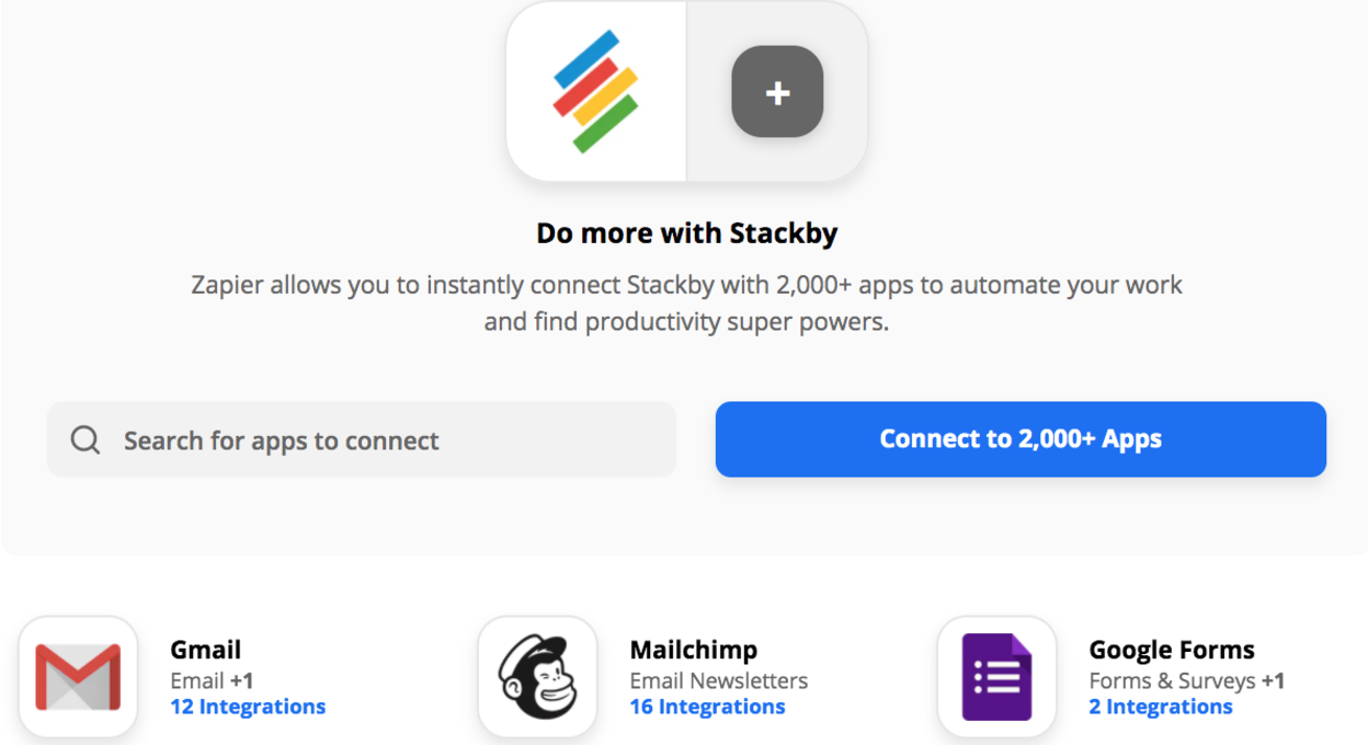 Connect Stackby to 2000+ apps via Zapier and automate your workflows between tools