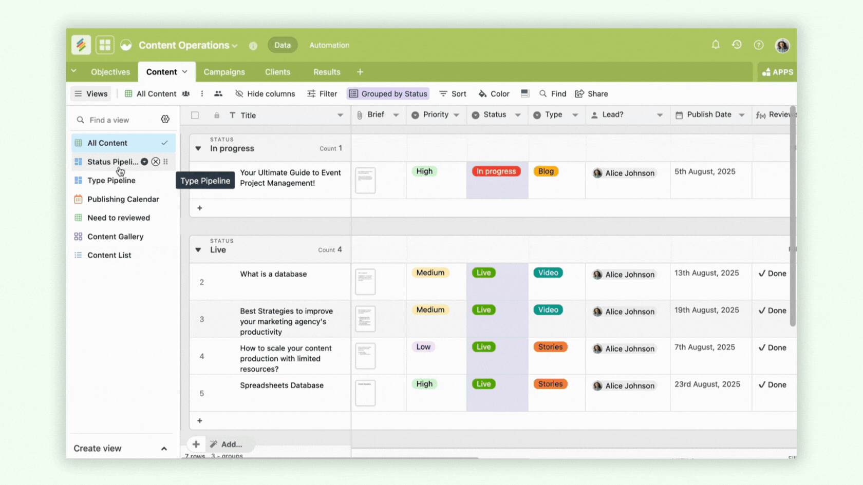 Plan campaigns, manage clients, and automate your entire marketing workflow with Stackby. From content calendars to performance tracking — bring your team, data, and AI-powered operations together in one place.