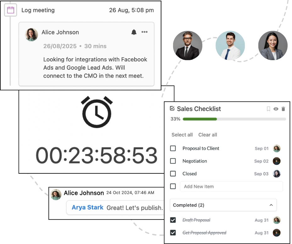 Add activity logs, checklists, reminders and even two way sync emails on each record like a CRM.