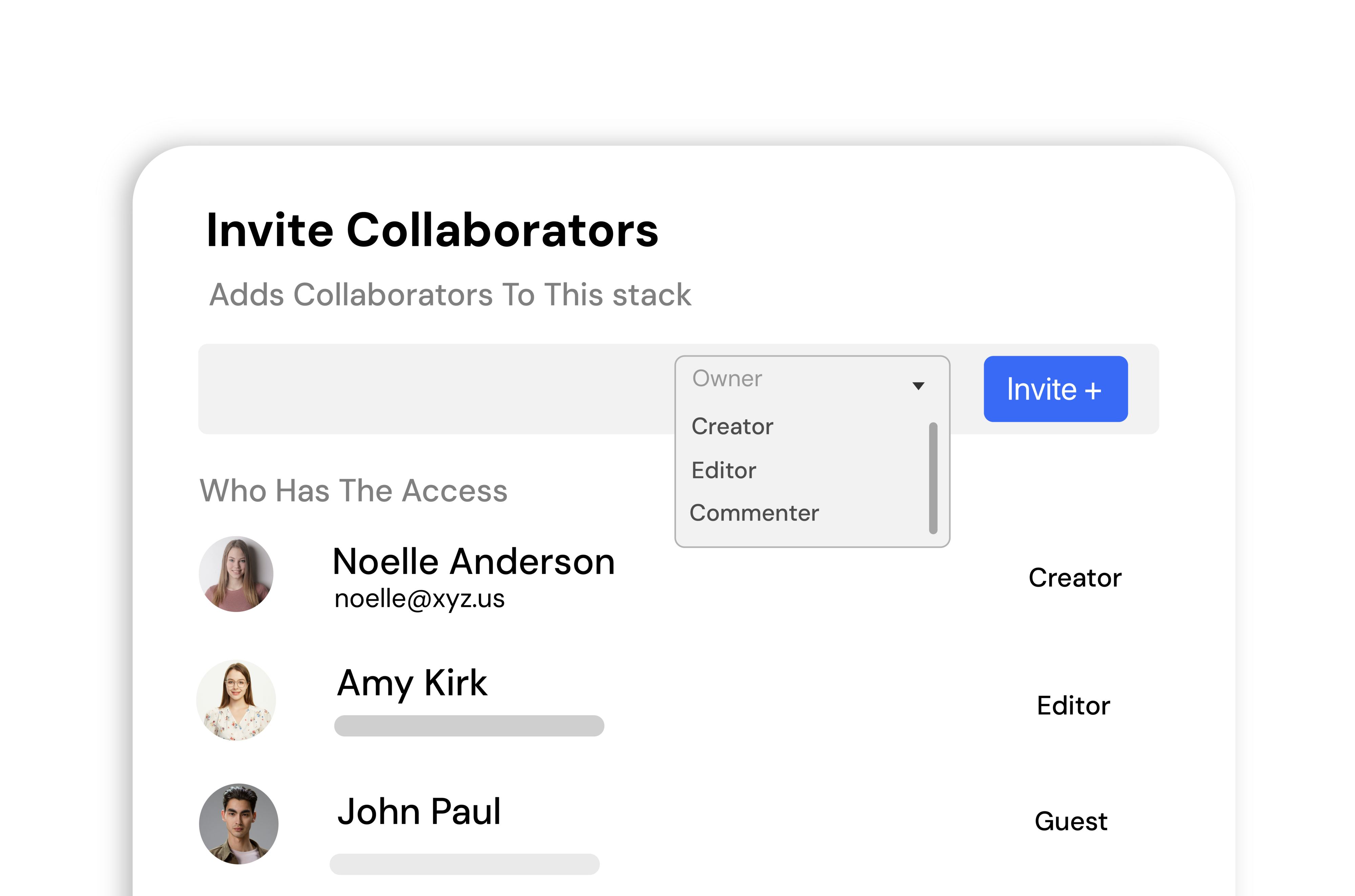 Invite your team or stakeholders to your apps or workflows & give them granular permissions as needed.