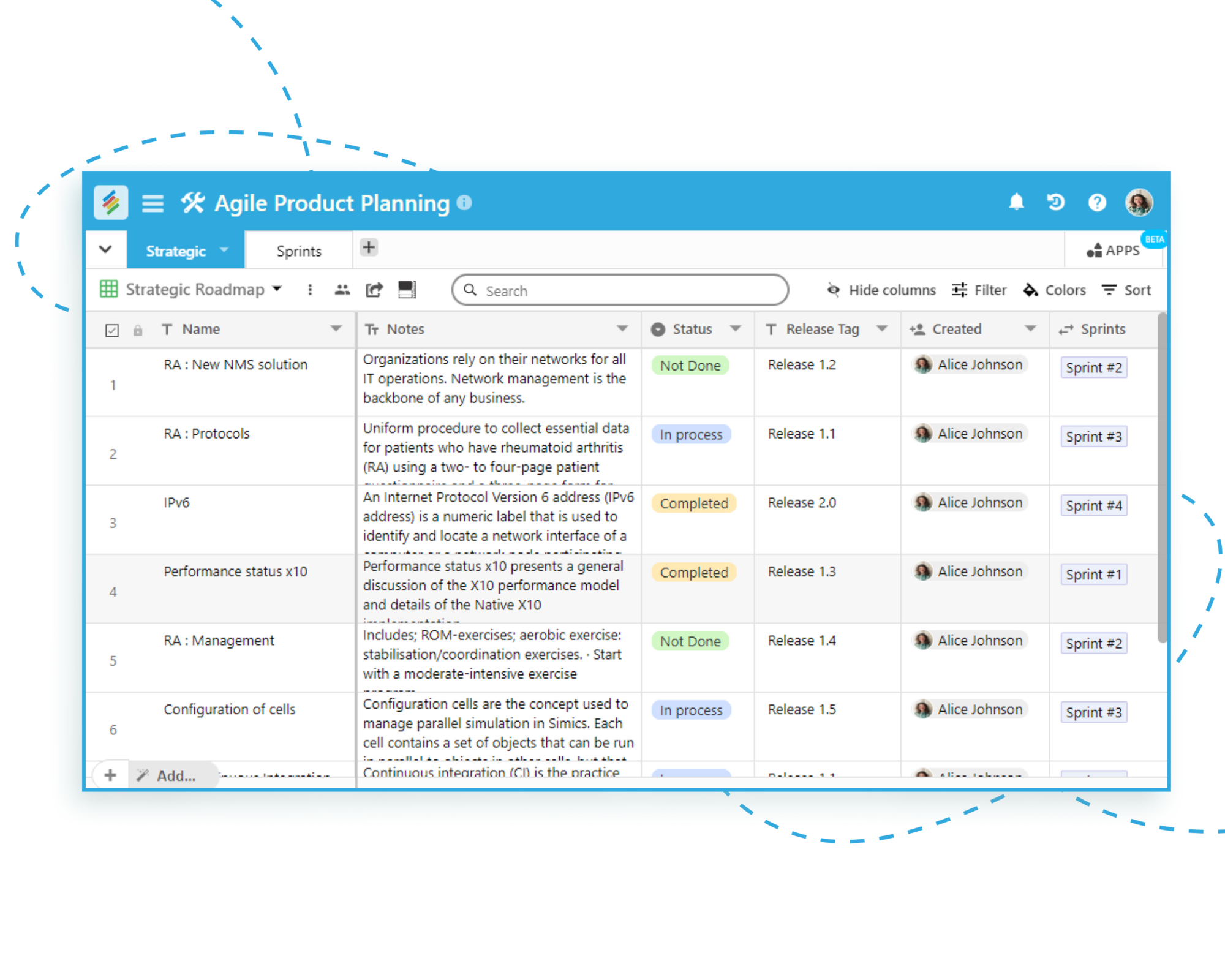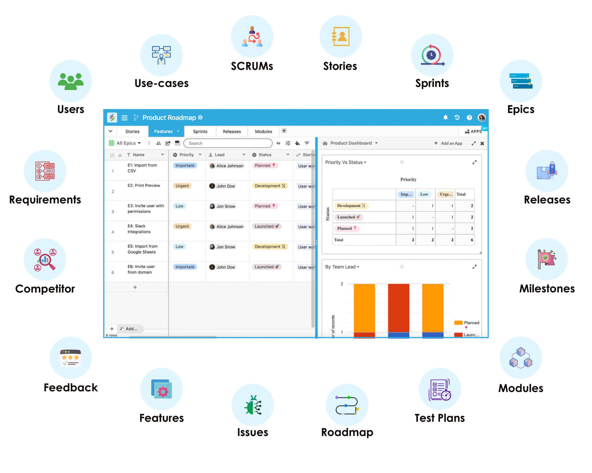 We've product teams & agencies across the globe that use Stackby to manage their end-to-end product development processes. Since the platform is entirely flexible & customizable, the use-cases are endless. Some of our popular use-cases are: Product Roadmap, User Research, Bug Reporting & Feedback Tracker, Sprint Planning, Client Trackers etc. with automations using JIRA, Slack and Email.