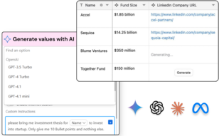 Embed AI in your workflows by bringing your own API key from popular models and custom prompts.