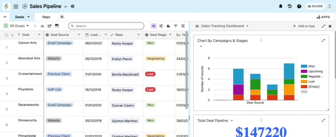 Build your custom CRM or track sales pipeline and keep your sales, account management or partnership teams in sync to achieve your milestones. Unite sales data, automate sales reporting and keep moving work forward.