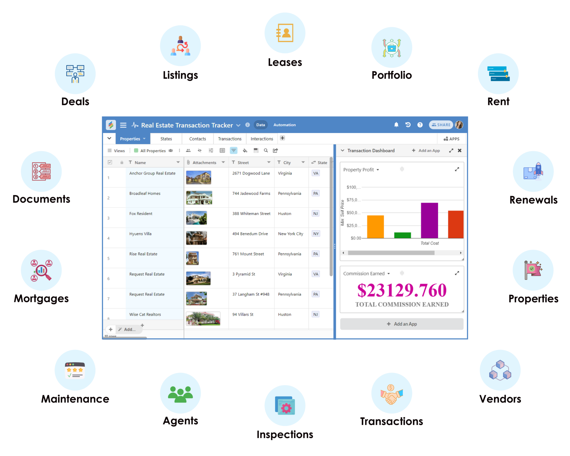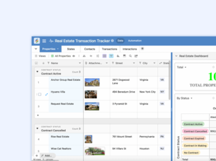 We've both residential and commercial real estate firms across the globe that use Stackby to manage their internal data, CRM and properties. Since the platform is entirely flexible & customizable, the use-cases are endless. Some of our popular use-cases are: Real Estate CRM, Real Estate Transaction Management for both residential and commercial, Lease Tracking, Real Estate Listings Manager, Vendor Management, Documents Management, Construction Project Management and more. Lot of them have also connected their online payment gateways like Stripe or Razorpay and even accounting tools like Quickbooks or Xero to automate and manage their data in Stackby.
